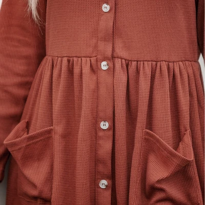 Elevate your style with our Button-Front Long Sleeve Mini Dress. This dress, in a captivating terra cotta hue, boasts a chic button-front detail that adds a touch of sophistication to your look. Step into this mini dress and embrace its versatile charm, perfect for any occasion where you want to radiate elegance and confidence.Product code: CAA05A3J064KK