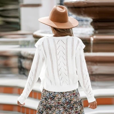Elevate your cardigan collection with our Cutout Ruffled Button-Front Cardigan. The playful cutout and ruffled details, combined with the stylish button-front design, create a charming and versatile layer that’s perfect for adding a touch of flair to your outfit.Product code: CAA06A3J001CCModel Wearing Size: SHeight: 5‘6″ in168 cmBust: 34 in86 cmWaist: 25 in63 cmHips: 30 in 76 cm