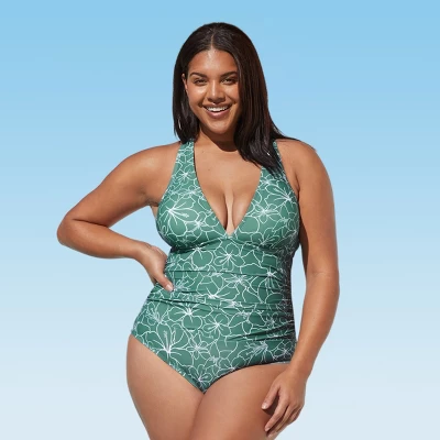 Women’s Floral V-neck Shirred Tie Back Plus Size One Piece Swimsuit – Cupshe