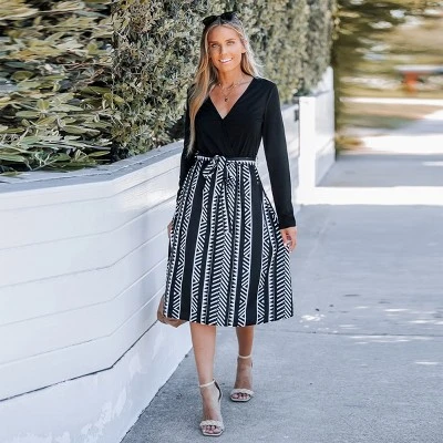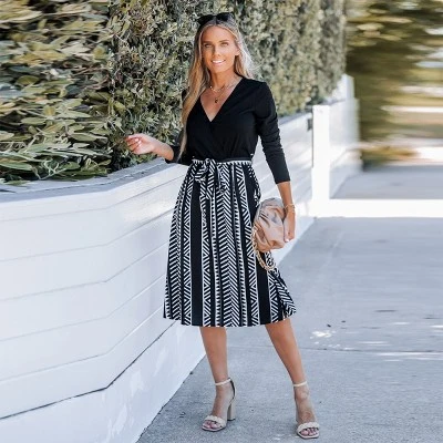 Elevate your style with our Geo Print Belted Midi Dress! This dress, boasting a striking partial geo print and a chic belted waist, exudes modern elegance, making it the perfect choice for a contemporary and polished look that’s sure to make a statement. Style with high heels for a look that will turn heads.Product code: CAA05A3H027CAModel Wearing Size: SHeight: 5‘6″ in168 cmBust: 34 in86 cmWaist: 25 in63 cmHips: 30 in 76 cm