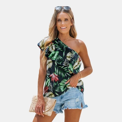 Elevate your summer style with our Tropical Leaf Print Ruffled One-Shoulder Top, a chic and flirty piece that combines a captivating tropical leaf print with a feminine ruffled detail, ensuring you’ll make a fashion statement wherever you go.Product code: CAA04D3F006UUModel Wearing Size: SHeight: 5‘6″ in168 cmBust: 34 in86 cmWaist: 25 in63 cmHips: 30 in 76 cm