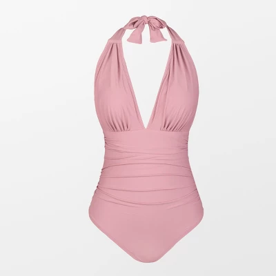 Our Plunge Ruched Backless Halter One Piece Swimsuit for women looks great on every body! This bathing suit features a deep v-neck, ruching at the bust and padded cups for added support. With its solid pattern and V-neckline design, this one piece swimsuit exudes elegance and charm, making it the perfect choice for a feminine and stylish look that captures the essence of summer.Product Code: ASL0103YB/ASL0103AA/DAA12E2G001TT/DAA12E2G001WW/DAA12E2G001EE/CAA12E2J003RR/DAA12E2G001JJ/DAA12E2G001UU