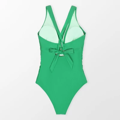 The Shirred Halter Plus Size One Piece Swimsuit will turn some heads at the beachside. The vintage-inspired one piece features halter ties, adjustable cross back straps, and a plunging neckline, making it the perfect choice for a stylish and confident day by the waves. Crafted in a lush green that’s generously shirred in the center to flatter your feminine form.Product Code: CAPF1103GG