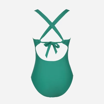 Switch up your style with this classic one-piece swimsuit featuring a plunging V-neckline, side ruching, and shoulder straps that lead to a crisscross self-tie back.Product Code: CAA12E2L029RRModel Wearing Size: SHeight: 5′ 5” in/165 cmBust: 34 in/86 cmWaist: 26 in/66 cmHips: 37 in /94 cm