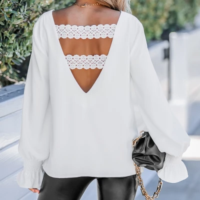 - V-neckline & Cutout & Lace Back Design