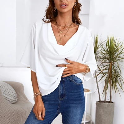 Spice up your spring-summer wardrobe with this Cupshe’s Dolman Sleeve Drape Collar Loose Top. Featuring a drape collar with a dolman sleeve and solid pattern. Combine it with a skirt and some slingback heels for a flowy and fresh fit! Step into this shirt and embrace its versatile charm, perfect for any occasion where you want to radiate elegance and confidence.Product Code: CAA04D2F010CC