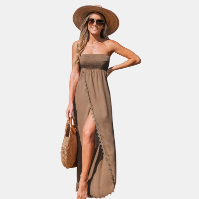 Indulge in the romantic allure of the Lace Smocked Maxi Tube Dress! With its delicate lace trim and flattering smocked bodice, this dress exudes elegance and charm. Perfect for summer soirées or special occasions, it allows you to embody timeless beauty with a touch of modern sophistication.Product code: CAA05A3F088HHModel Wearing Size: SHeight: 5‘6″ in168 cmBust: 34 in86 cmWaist: 25 in63 cmHips: 30 in 76 cm