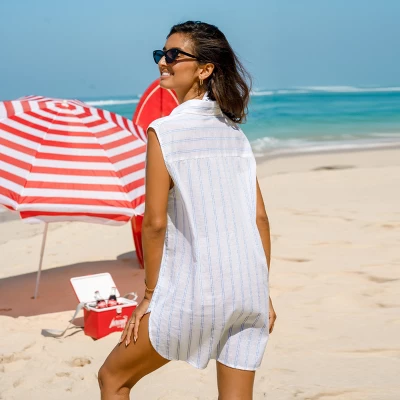 Effortlessly stylish, this Striped Split Neck Cover-Up Dress features a chic split neck and a playful striped pattern, making it the perfect piece to slip on over your swimwear, ensuring you stay fashion-forward and beach-ready all day long.Product code: CAA07B3F015CCModel Wearing Size: XSHeight: 5′ 5” in165 cmBust: 30 in77 cmWaist: 24 in61 cmHips: 32 in 81 cm