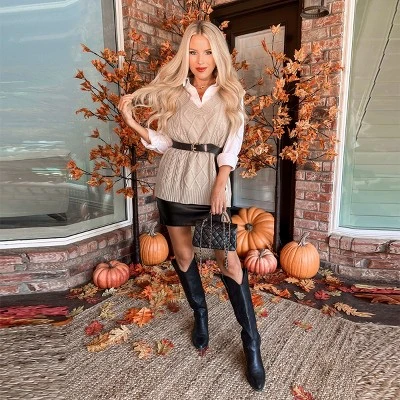 Wrap yourself in style and warmth with this Warm Hugs Cable Knit Sweater Vest from Cupshe. The sweater features a v-neckline, sleeveless, and wide straps. This cozy yet chic vest is perfect for layering, keeping you snug while adding a touch of elegance to your winter wardrobe. Enjoy wearing your new cozy and chic sweater vest!Product code: CAA06E3J001GC